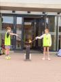 Zu Beginn trugen zwei Schüler unserer 4.ten Klasse die Fackeln standesgemäß zum Sportfest, um dort im Beisein aller SchülerInnen und LehrerInnen unser kleines olympisches Feuer zu entzünden.
