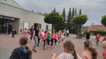 Die Kinder der Tanz AG, unter der Regie unserer Lehrerin Frau Holzapfel, ließ die SchülerInnen im Anschluss ordentlich wach werden und tanzte zu fröhlicher Musik die Arme und Beine warm.