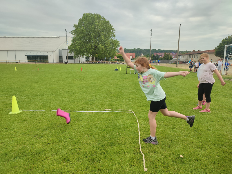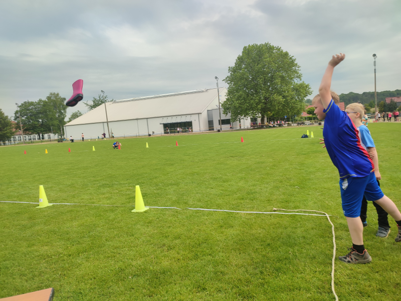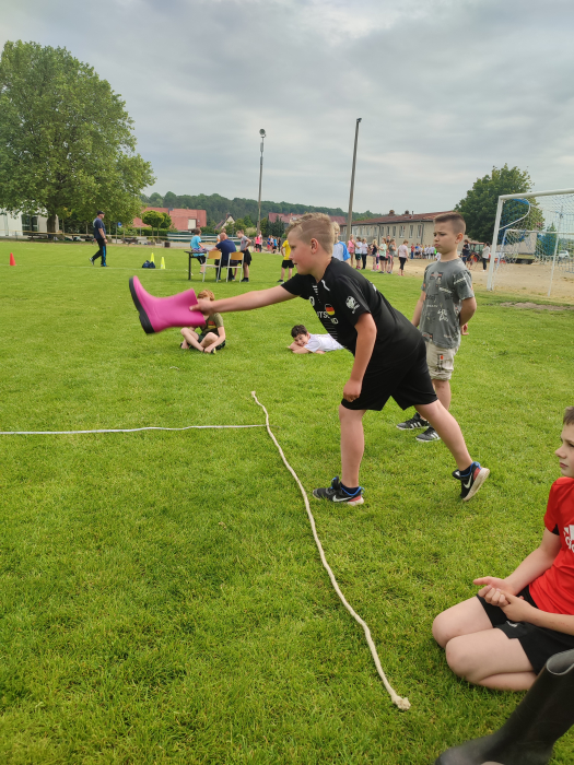 In den Disziplinen Gummistiefelweitwurf, 50-Meter-Lauf, Weitsprung und Standweitsprung wurde um jeden Milimeter und jede Sekunde gekämpft, um am Ende des Sportfestes so viele Gesamtpunkte wie möglich erreichen zu können.