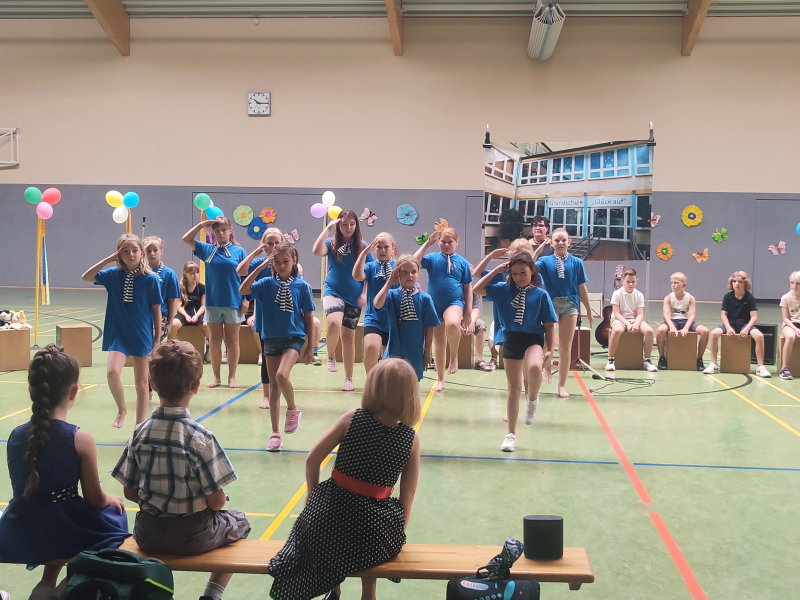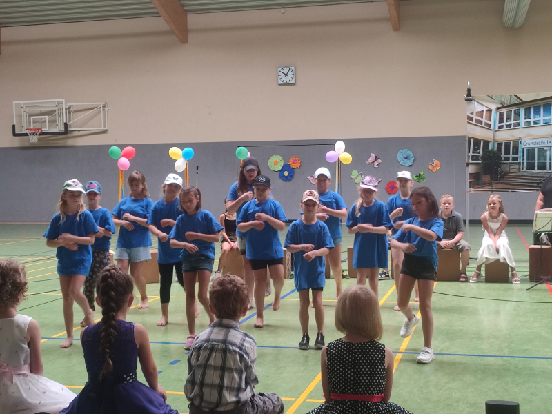 Mit viel Freude bewegen sich die Jungen und Mädchen zur Musik. Gemeinsam mit Frau Holzapfel studieren sie Tänze ein, die bei verschiedenen Veranstaltungen aufgeführt werden.